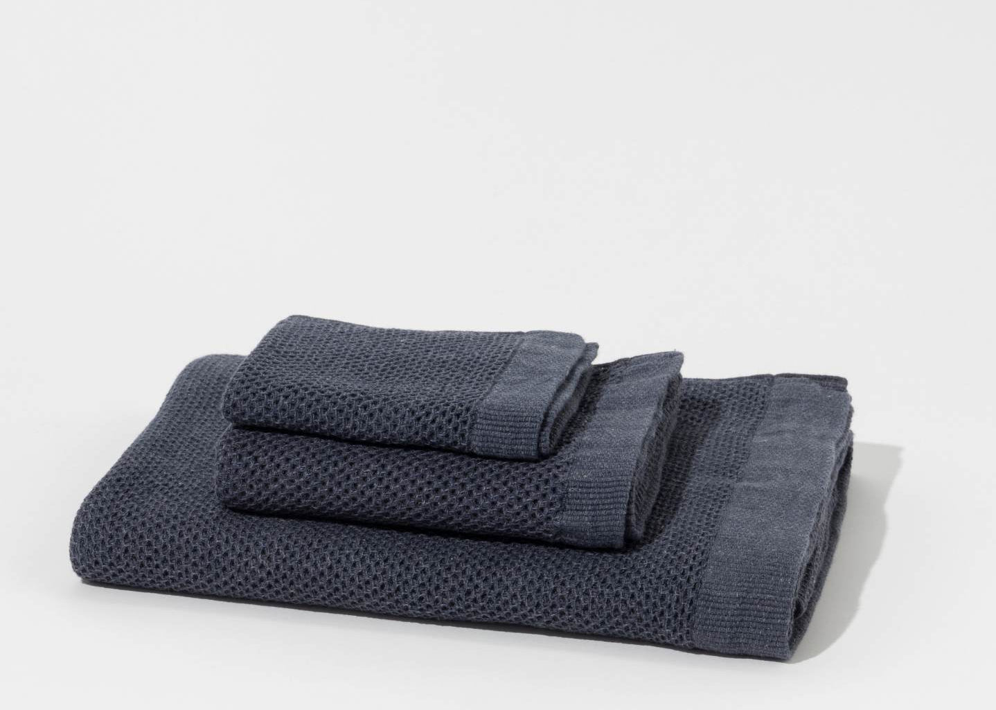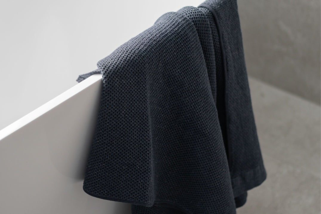 Vintage Waffle Bath Range by Kontex, a lightweight bath towel range with a subtle tight weave waffle. The Vintage Waffle Japanese bath towel range by Kontex is soft, supple, and fast drying. The perfect bath towel to suit any interior. Available in both Grey and Navy.