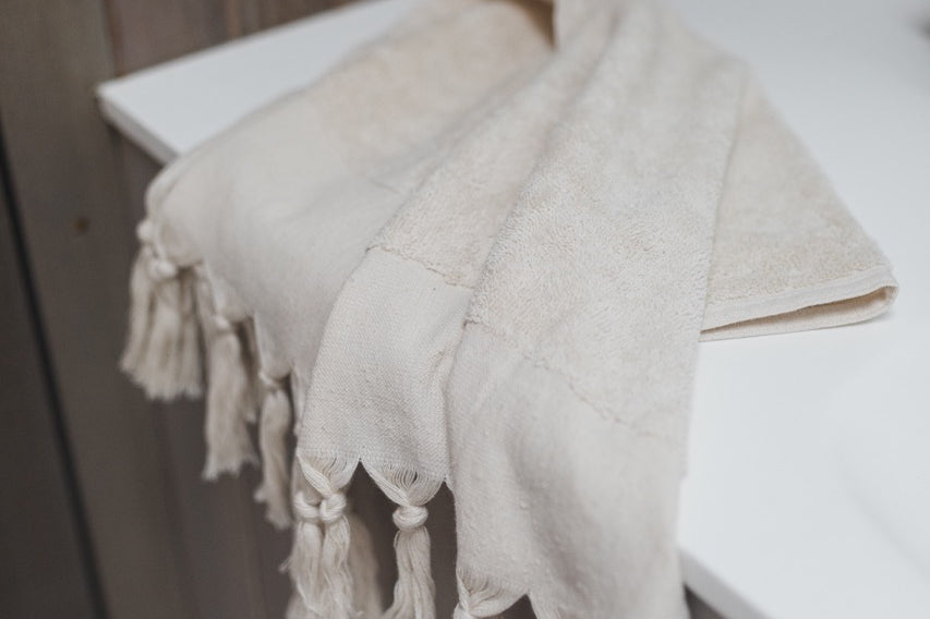 An Ottoloom staple. The Aspen Organic Turkish Hand Towel has been crafted using traditional Turkish weaving methods to create the most luxurious and soft bath towel in a soft creamy ivory colour, made with independently certified 100% organic cotton.