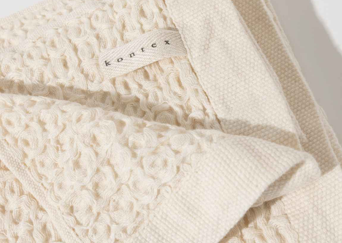 Kontex towels are woven at gentle speeds on an old fashioned weaving machine. This process brings out the natural softness of the materials and makes the towels as soft and silky as cashmere, yet durable enough for everyday use.