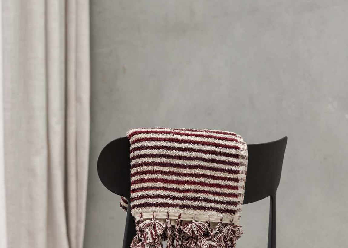 Ottoloom Turkish bath towels are 100% organic cotton, hand dyed and woven, with a unique and intricate design. Woven slowly and gently on an old shuttle loom, the Burgundy Stripe Towel range brings you a striped design to suit any bathroom interior. The densely woven, silky soft, natural fibres feel blissfully indulgent and will complement any design aesthetic in the home or bathroom.