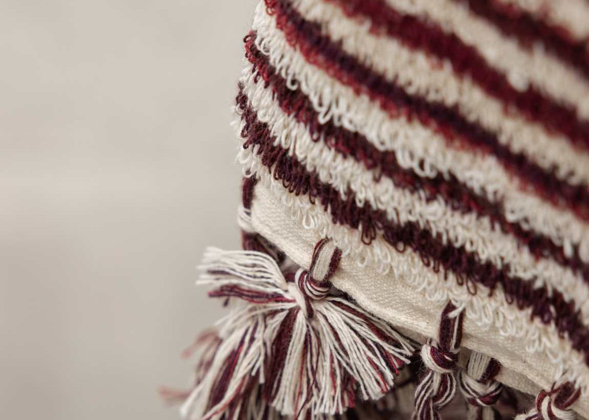 Ottoloom Burgundy Stripe Bath Mat with special turkish tassels is traditionally woven with a mix of three rich burgundy threads.