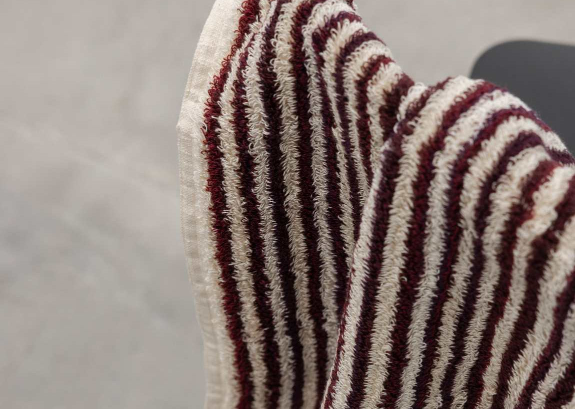 Ottoloom Turkish bath towels are 100% organic cotton, hand dyed and woven, with a unique and intricate design. Woven slowly and gently on an old shuttle loom the Burgundy Stripe Towel range brings you a striped design to suit any bathroom interior. The densely woven, silky soft, natural fibres feel blissfully indulgent and will complement any design aesthetic in the home or bathroom.