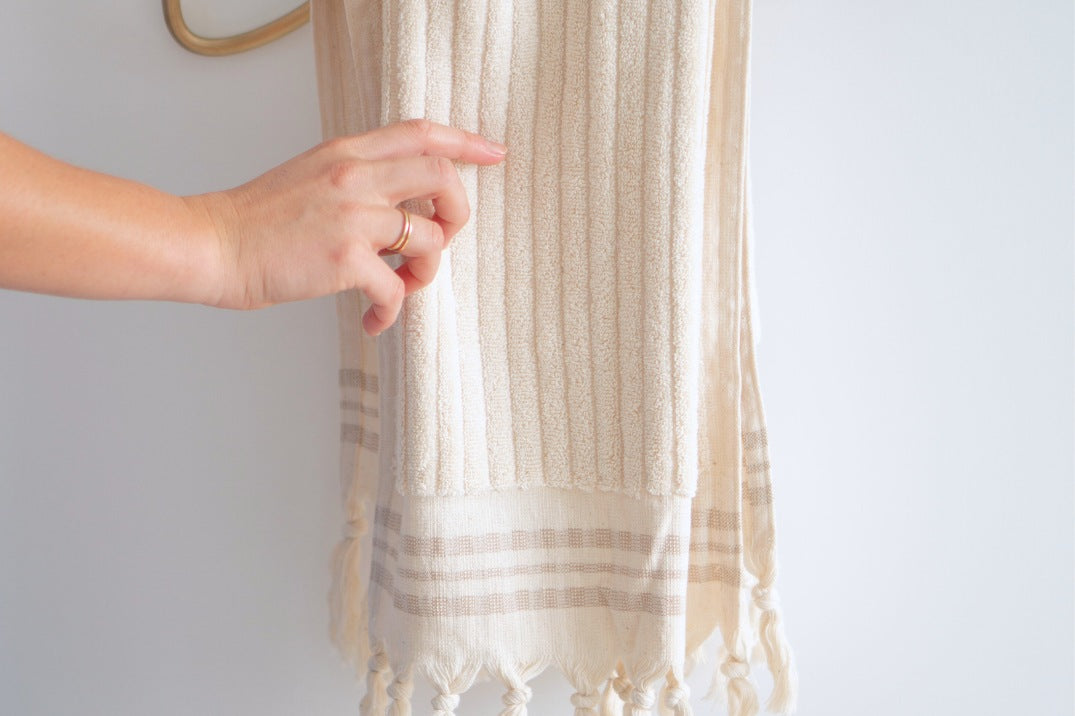 An Ottoloom staple. The Aspen Organic Turkish Hand Towel has been crafted using traditional Turkish weaving methods to create the most luxurious and soft bath towel in a soft creamy ivory colour, made with independently certified 100% organic cotton.