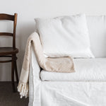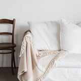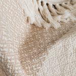 Ottoloom Ecru and White large Turkish blanket or bedspread. Hand dyed and woven, with a unique and intricate design. The subtle, earth tones of the organic dyes will complement any design aesthetic in the home sitting beautifully against various surfaces from vintage hardwoods to contemporary stone or marble.