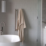 Ottoloom bath towels and robes are 100% organic cotton, hand dyed and woven, with a unique and intricate design. Woven slowly and gently on an old shuttle loom the Valdez Bath Towel range brings you a neutral design to suit any bathroom interior. The densely woven, silky soft, natural fibres feel blissfully indulgent and will complement any design aesthetic in the home or bathroom.