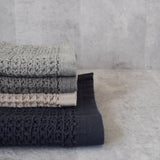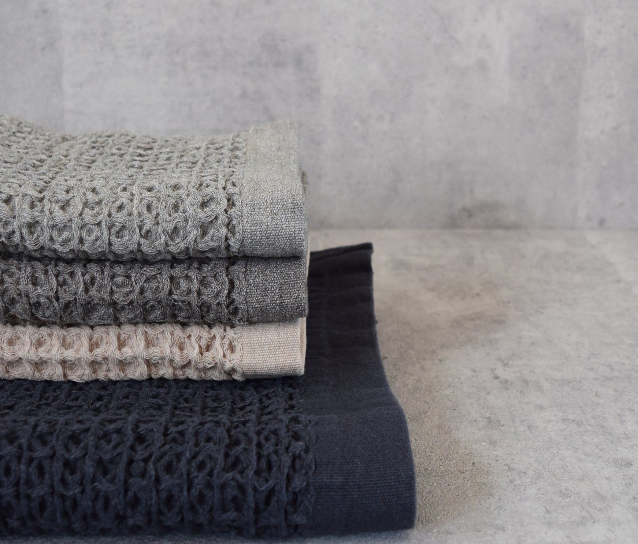Kontex towels are woven at gentle speeds on an old fashioned weaving machine. This process brings out the natural softness of the materials and makes the towels as soft and silky as cashmere, yet durable enough for everyday use.