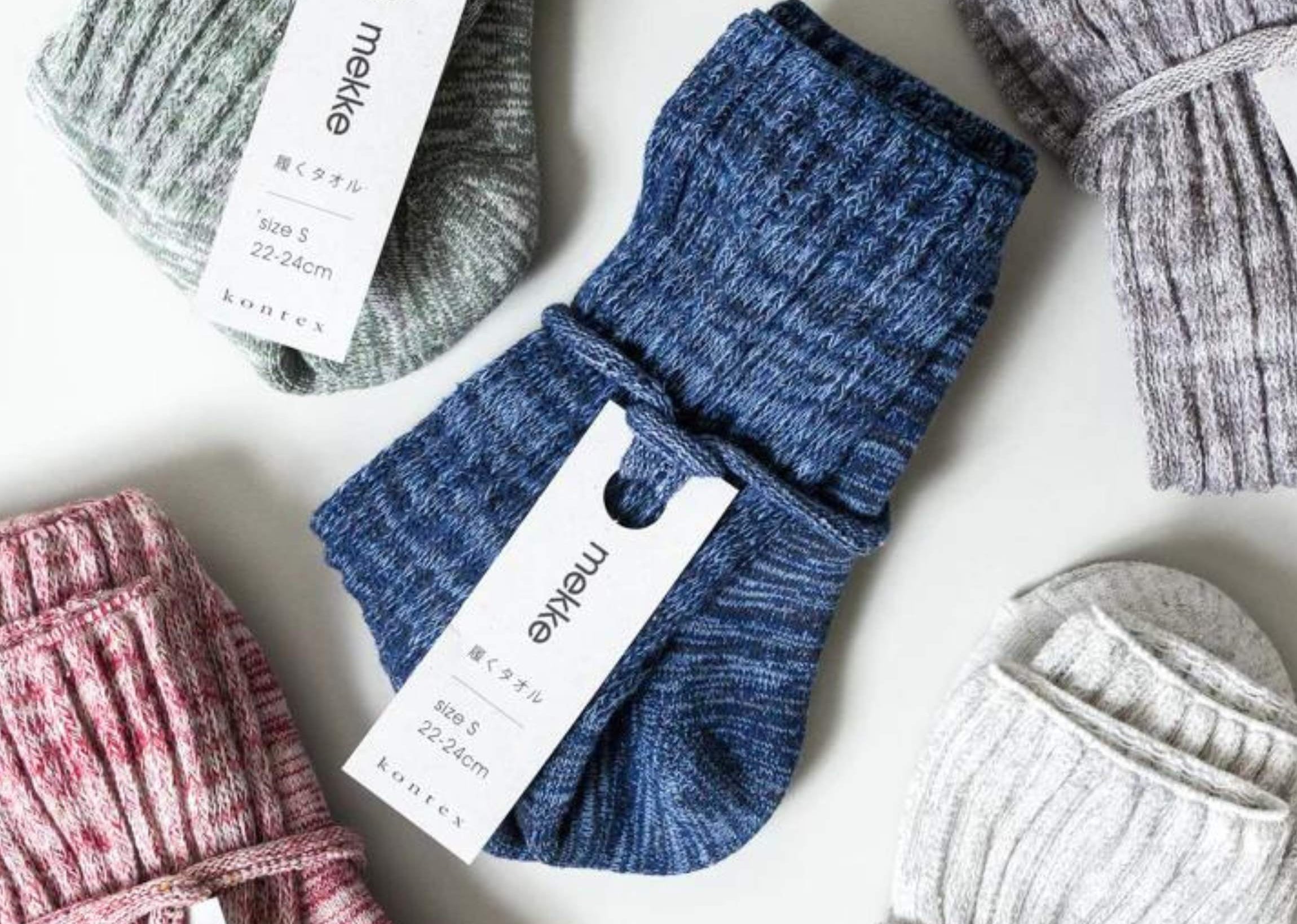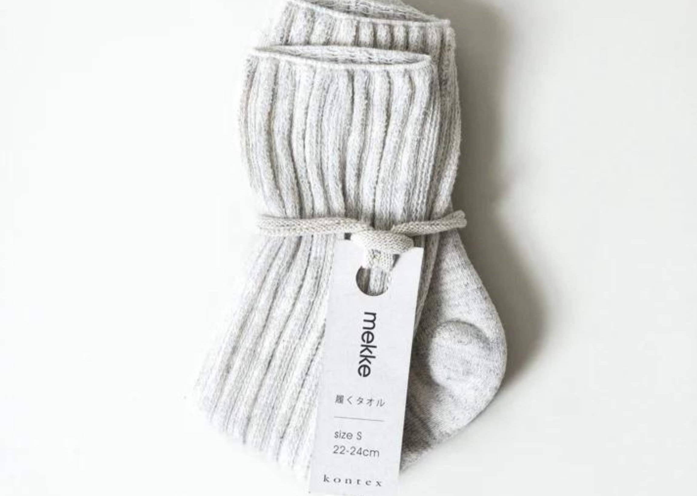 Mekke Socks, named after the Japanese slang term mekke-mono (which means "good find"), are woven on the same slow looms as many of our favourite Kontex Japanese Towels. Each pair has a cushy and absorbent terry sole to help minimise the unpleasant sweaty feet feeling. These socks will become a weekly favourite, you'll want a pair in every colour.