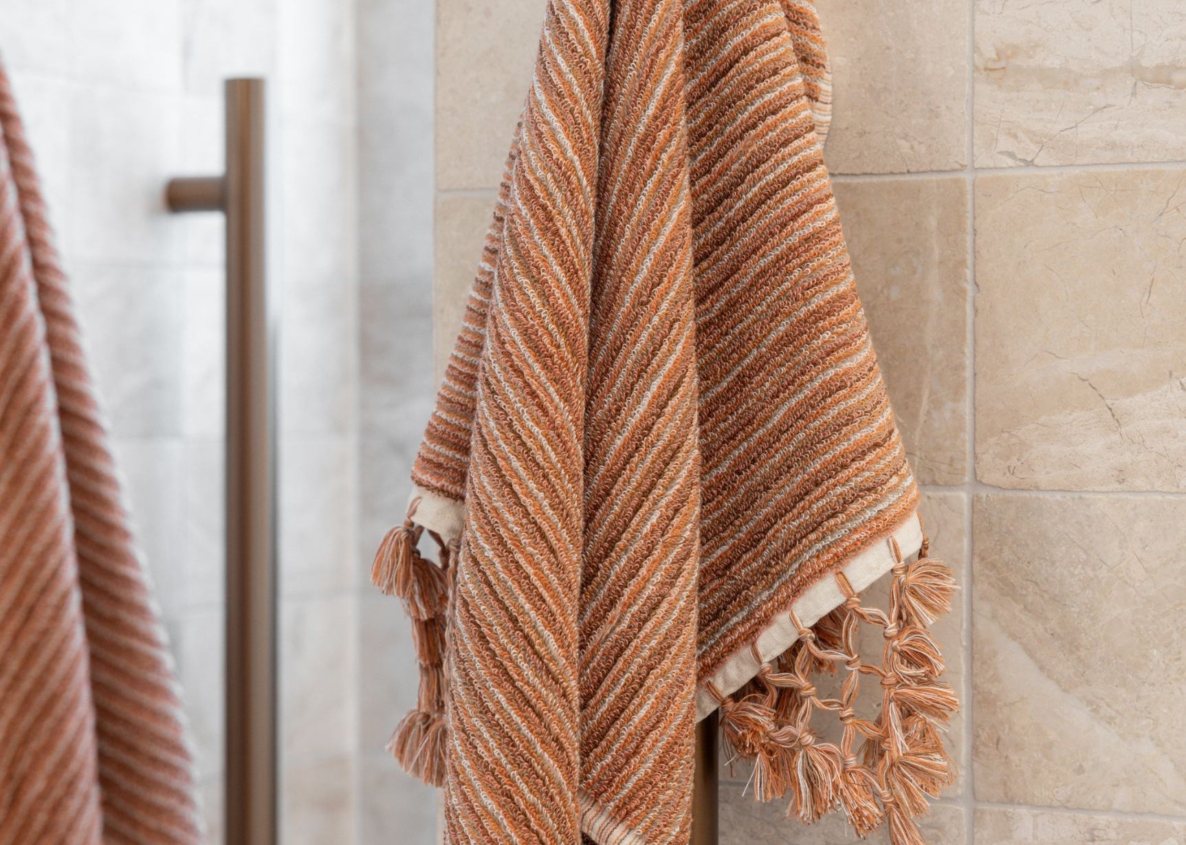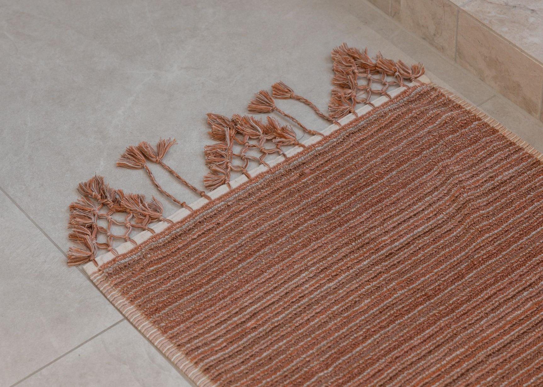 Ottoloom Sedona Bath Mat with special turkish tassels, is inspired by the soft hush of changing seasons — a palette of rust, peach, and ecru drawn from sun-faded earth and cooling light. Harmoniously woven, each towel offers warmth, texture, and a quiet sense of retreat.