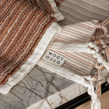 Our organic cotton hand towel in a subtle stripe with traditional Turkish tassels. The densely woven, silky soft, natural fibres feel blissfully indulgent and will complement any design aesthetic in the home.