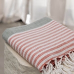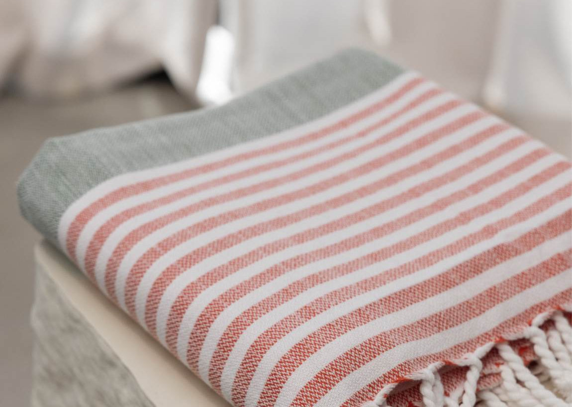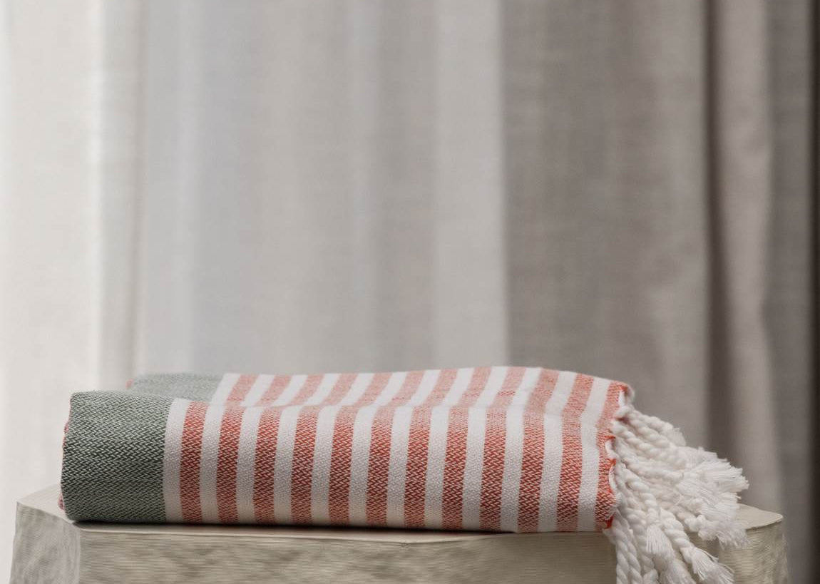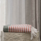 Ottoloom brings you a new beach towel inspried by sun-baked coastlines and earthy Mediterranean hues. Ottoloom's Terra Stripe Beach Towel features warm terracotta tones softened with ecru and a subtle sage edge.