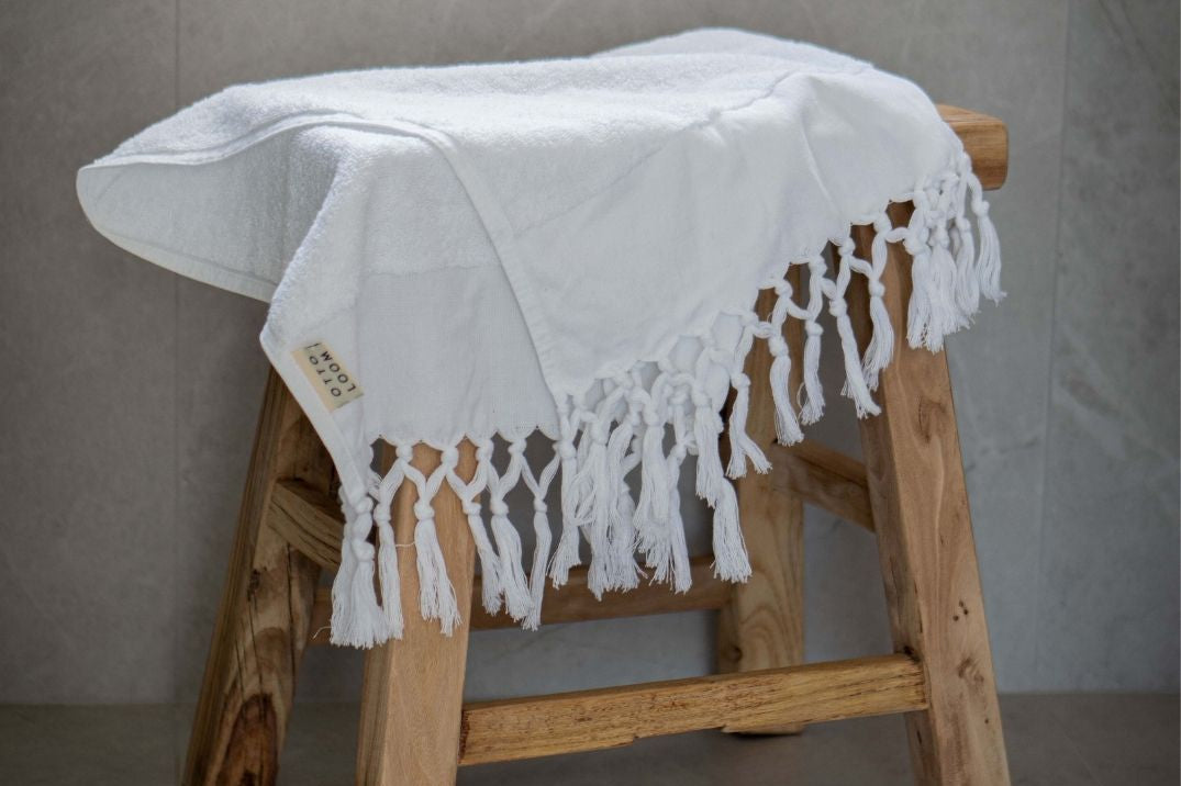 Ottoloom Organic Cotton Turkish Bath Mat. Crafted using traditional Turkish weaving methods to create the most luxurious and soft bath towel range in a crisp white colour, made with independently certified 100% organic cotton.